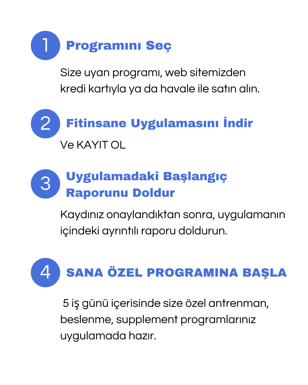 Antrenman planınız, sizinle birlikte hedeflerinize göre oluşturulur. Beslenme planınız ise uygulama üzerinden takip edilebilir şekilde size özel hazırlanır.